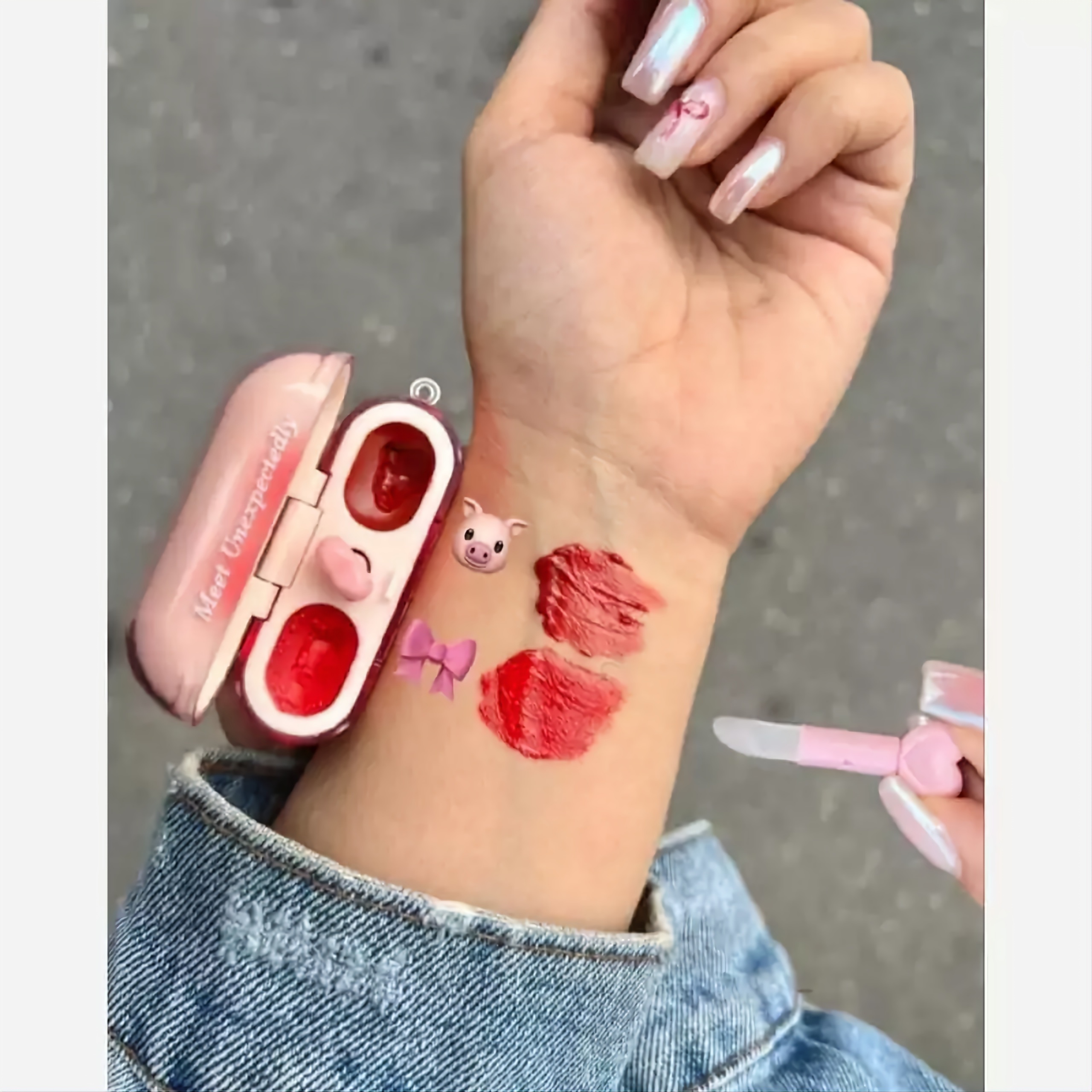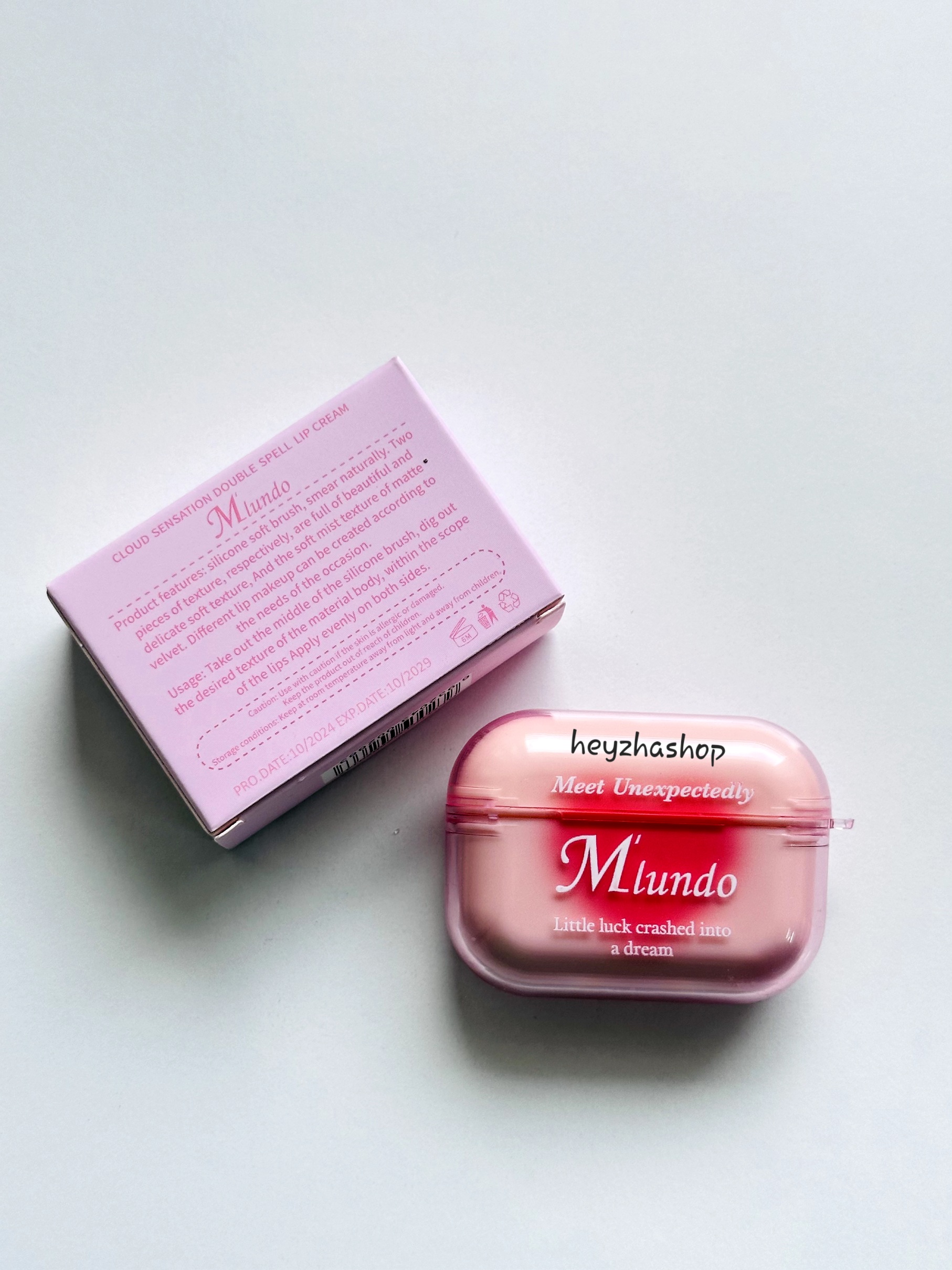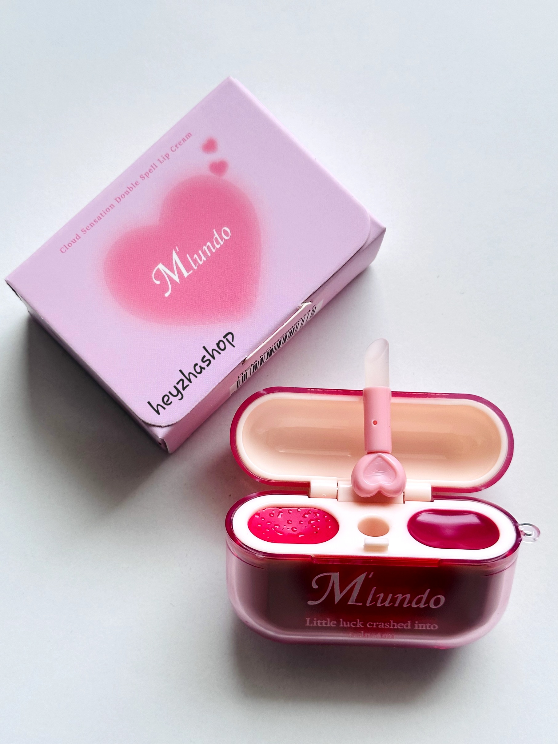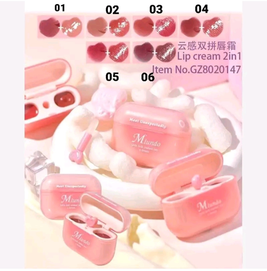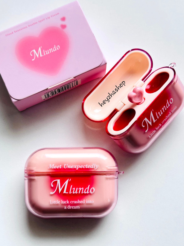 رژ لب ایرپادی برند mlundo رژلب پینترستی کره ای رژ دوطرفه موس لب و لیپگلاس همراه براش سیلیکونی قلبی