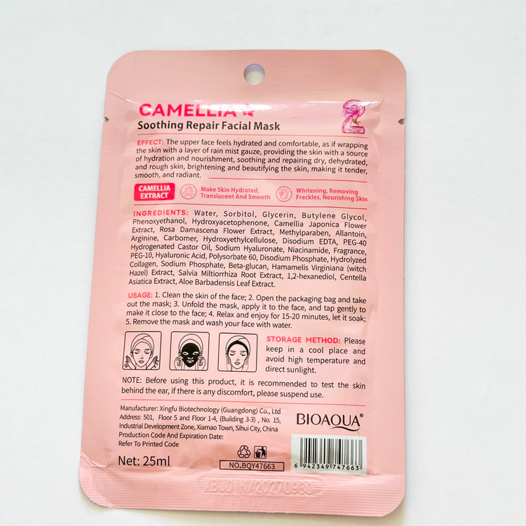 ماسک ورقه ای صورت ترمیم کننده و تسکین دهنده با عصاره کاملیا