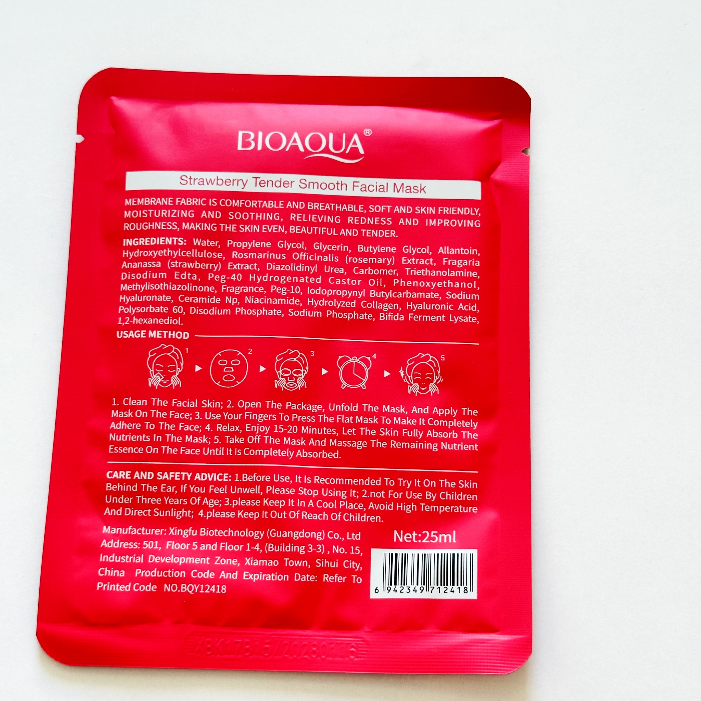 بسته را باز کنید و لایه غشایی آغشته به ماسک داخل بسته را باز کرده و روی صورت قرار دهید .