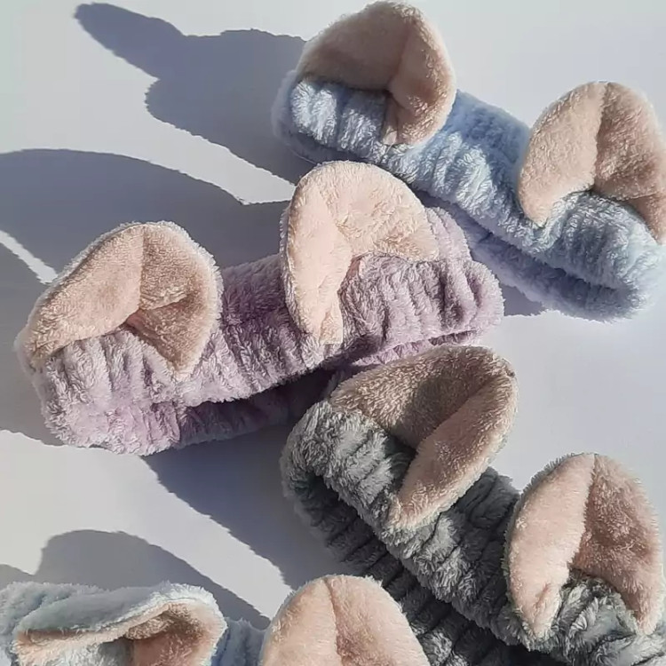 هدبند آرایشی مخمل فانتزی خرگوشی رنگ طوسی فری سایز هد بند رنگی حوله ای