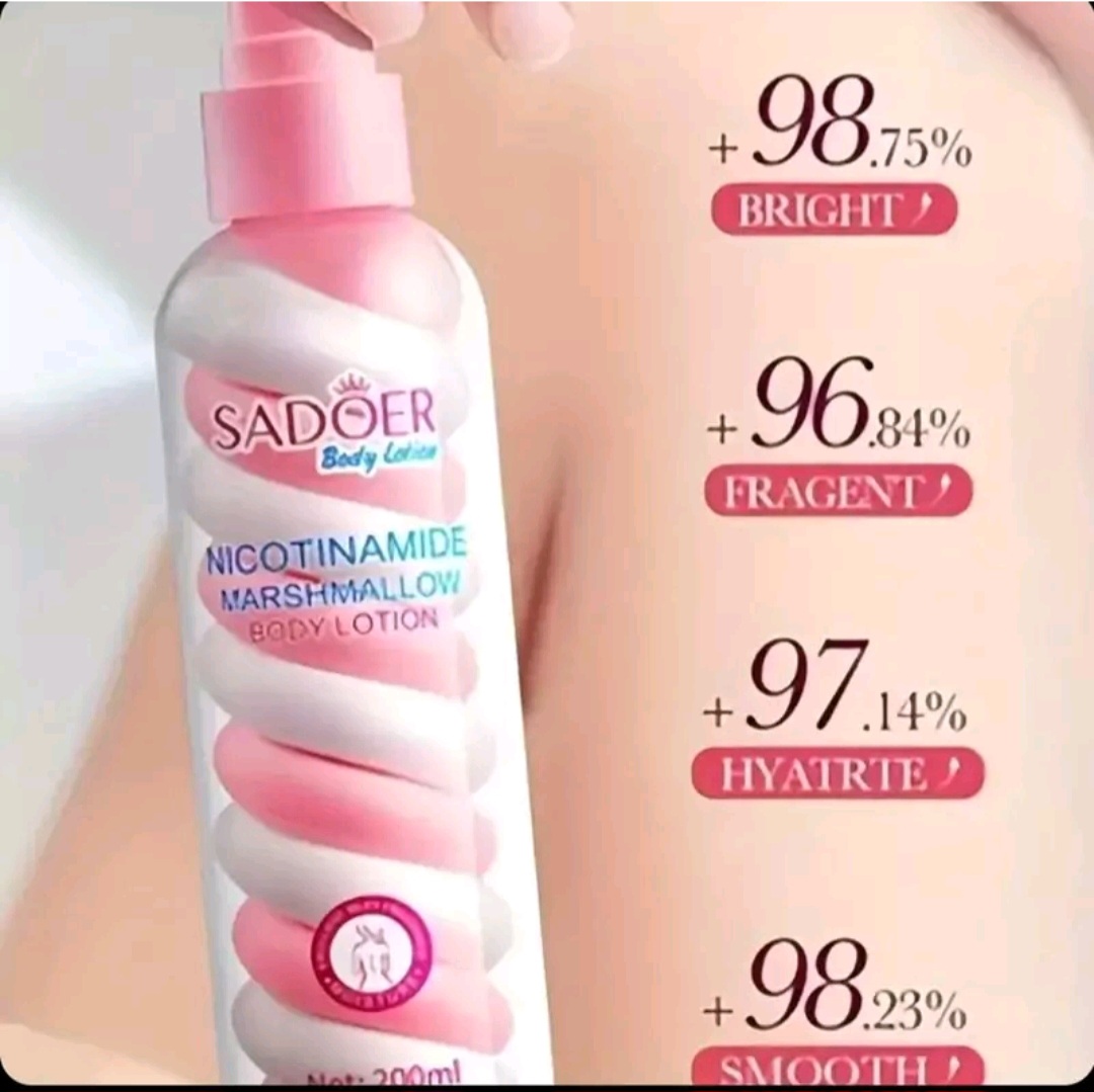 لوسیون بدن مارشمالو سادور sadoer حجم 200 میل مدل نیکوتینامید مناسب صورت و بدن